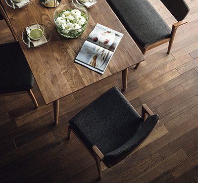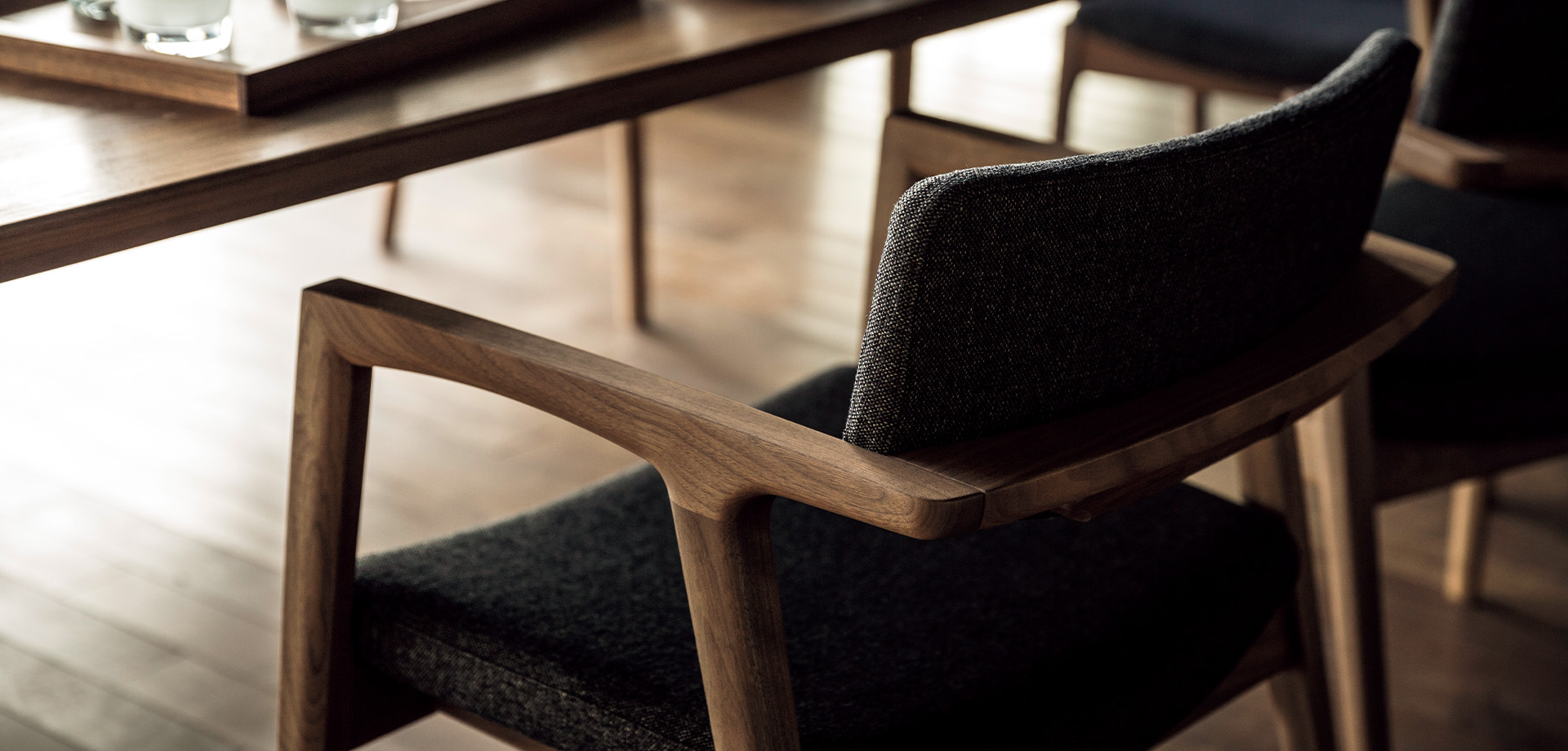 マテリアルやカラーで纏う空気を一変するも、その佇まいからは一貫したアイデンティティを感じる。軽やかでシャープなフォルムは、家具として求められる要素がミニマルかつ簡潔にまとめられ、シンプルで本質的である。時代やスタイルに固執しない豊かな時間を。