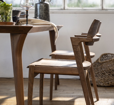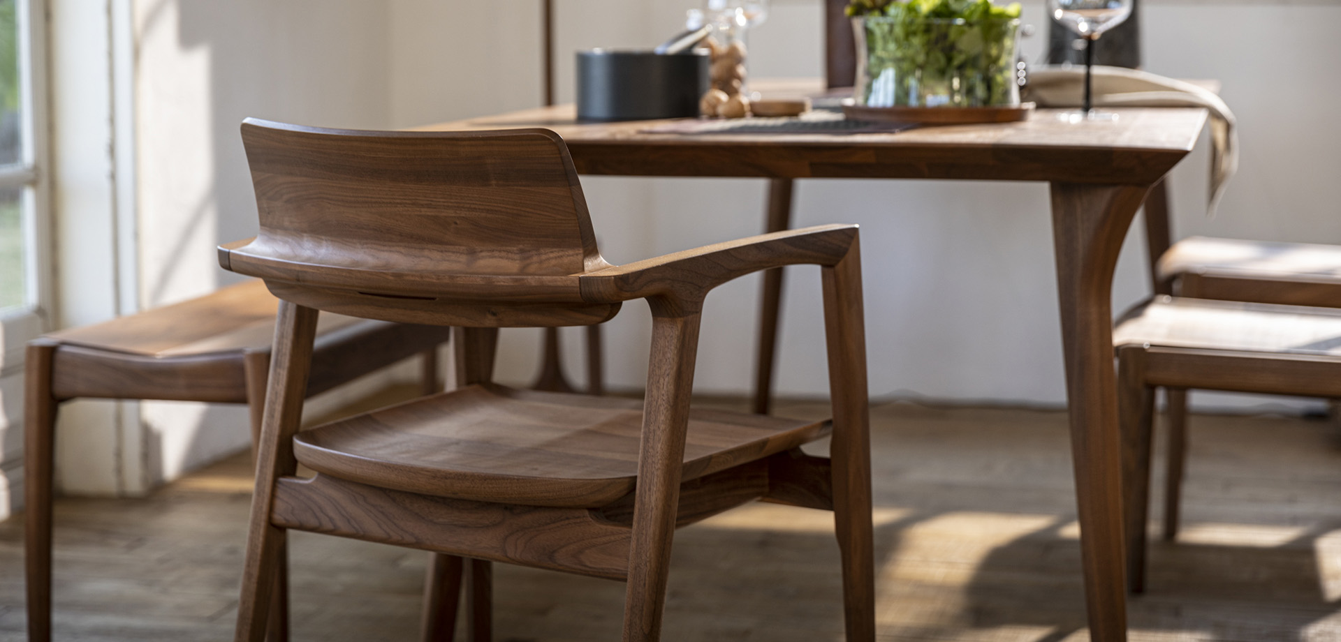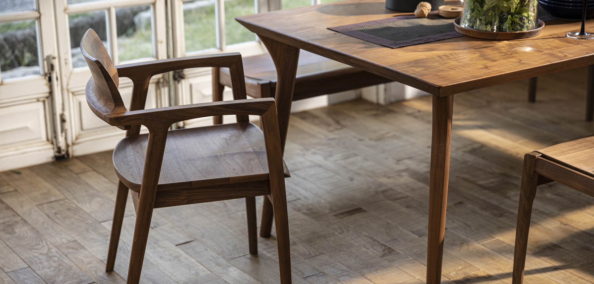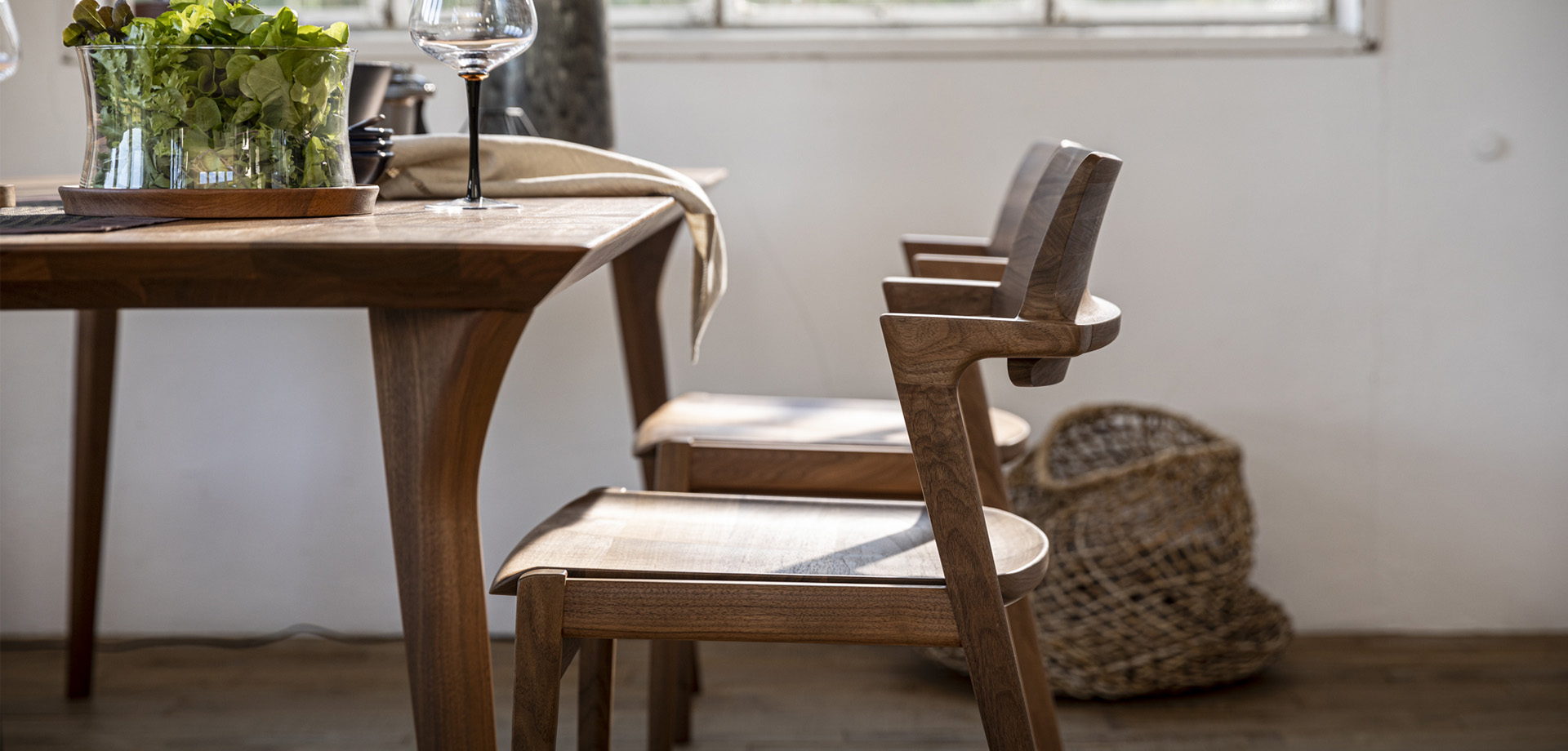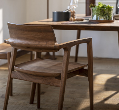 Kotiシリーズの特徴であるエッジ感や直線的なラインはそのままに、座彫りの丸みや、背から肘にかけての有機的なカーブに美しさを感じさせます。人気No.1ブランドをさらに洗練されたシリーズへと導くチェアです。