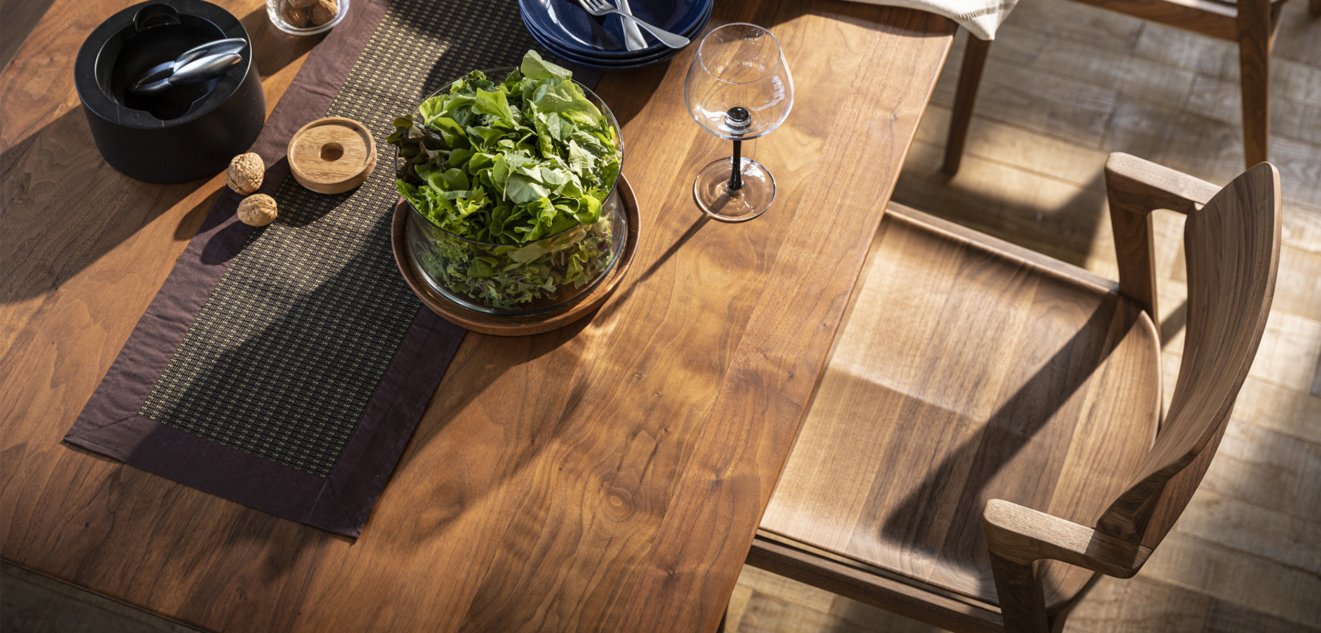 マテリアルやカラーで纏う空気を一変するも、その佇まいからは一貫したアイデンティティを感じる。軽やかでシャープなフォルムは、家具として求められる要素がミニマルかつ簡潔にまとめられ、シンプルで本質的である。時代やスタイルに固執しない豊かな時間を。