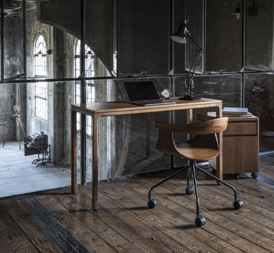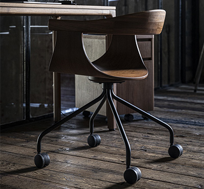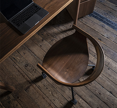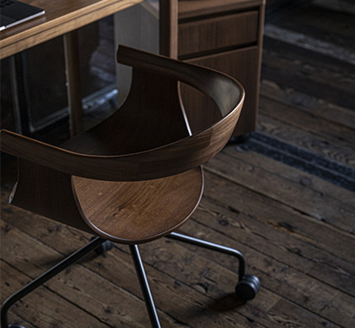 丸いフォルムが愛らしいデスクチェア。高級感のあるスチール脚を採用しています。シンプルなデザインのキャスターは快適な移動を約束します。書斎や自室だけでなく、リビング空間やダイニング空間にも調和するため、どのお部屋でもお使いいただけます。