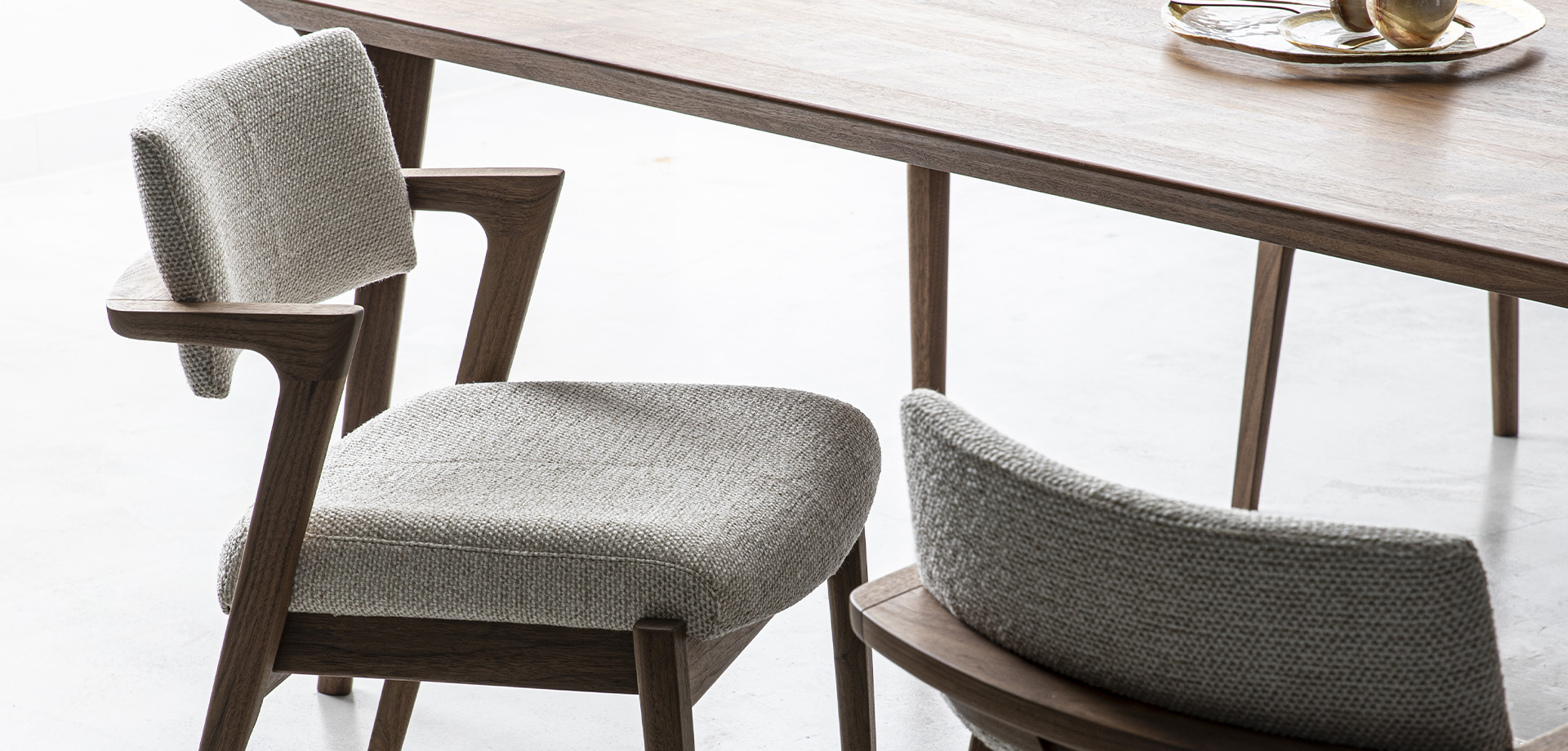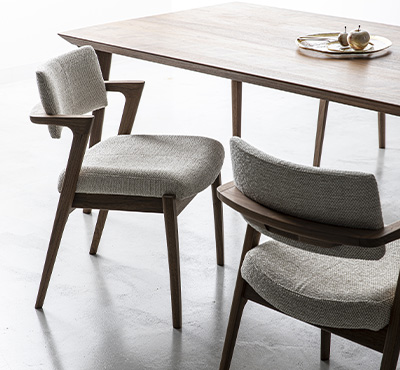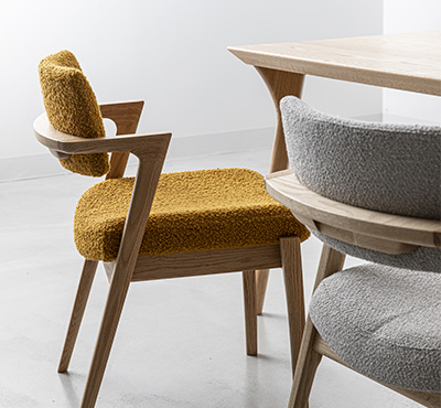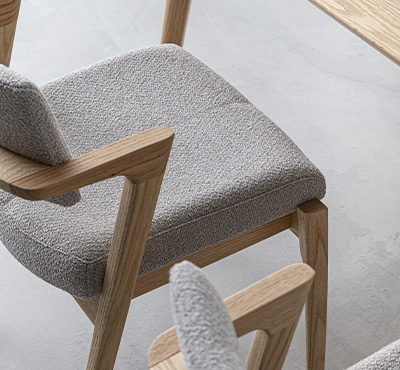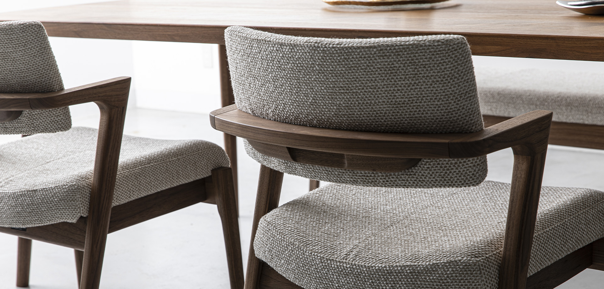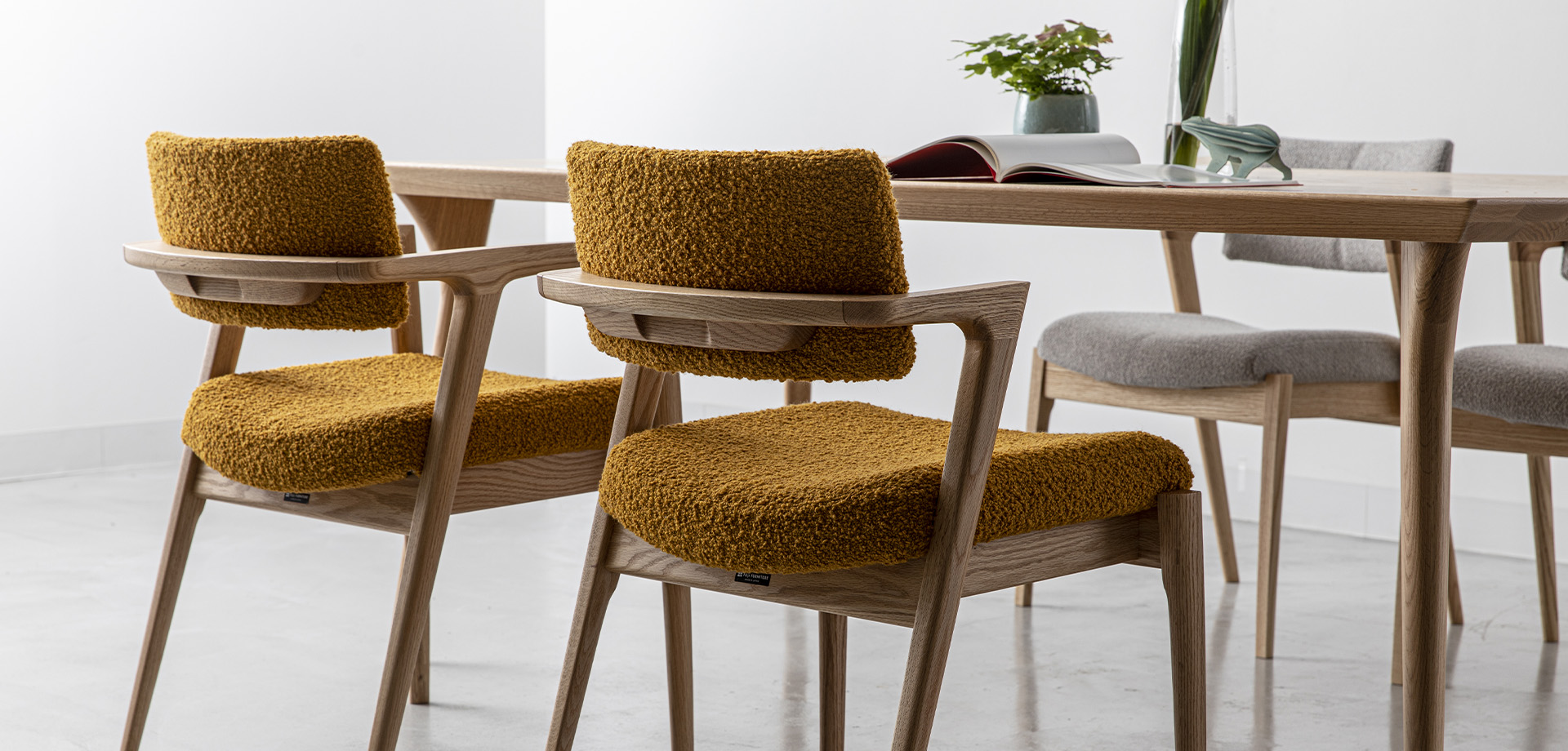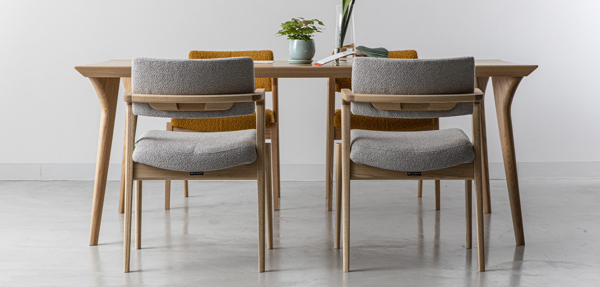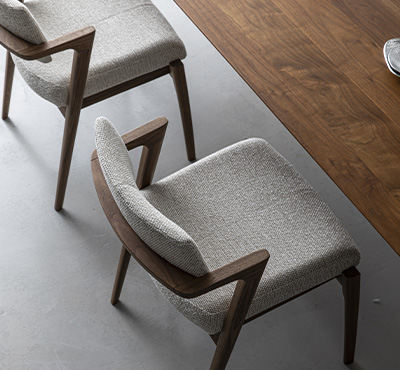 無垢材がもたらすやさしい手触り、端正なフォルムはそのままに、体をやわらかく支える構造に改良し、深いくつろぎと快適性を実現しました。