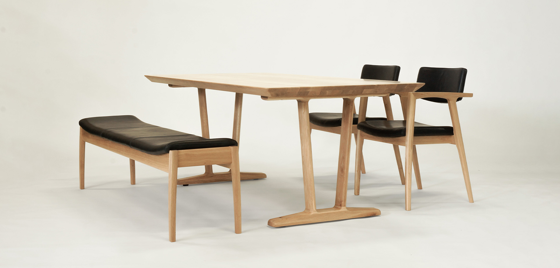 座の両端に描いた体を受け止めるための緩やかなカーブや、無垢材を削り出した細く上品な脚。テーブルを挟んでKotiのダイニングチェアを並べても、調和のとれたデザインに仕上げました。飽きのこないデザインと機能性に、幅広いサイズ展開。「Koti」は、全ての人を受け入れる懐の深いシリーズです。