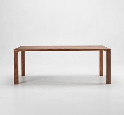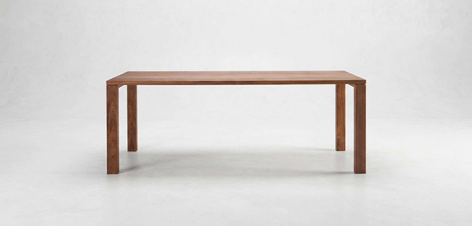 2種類の天板と8種類の面形状から選べるオーダーテーブル。無垢材の温かみを存分に感じられる脚は四隅に配置されているため、チェアが収まりやすく、家族でゆったりと集うことができます。