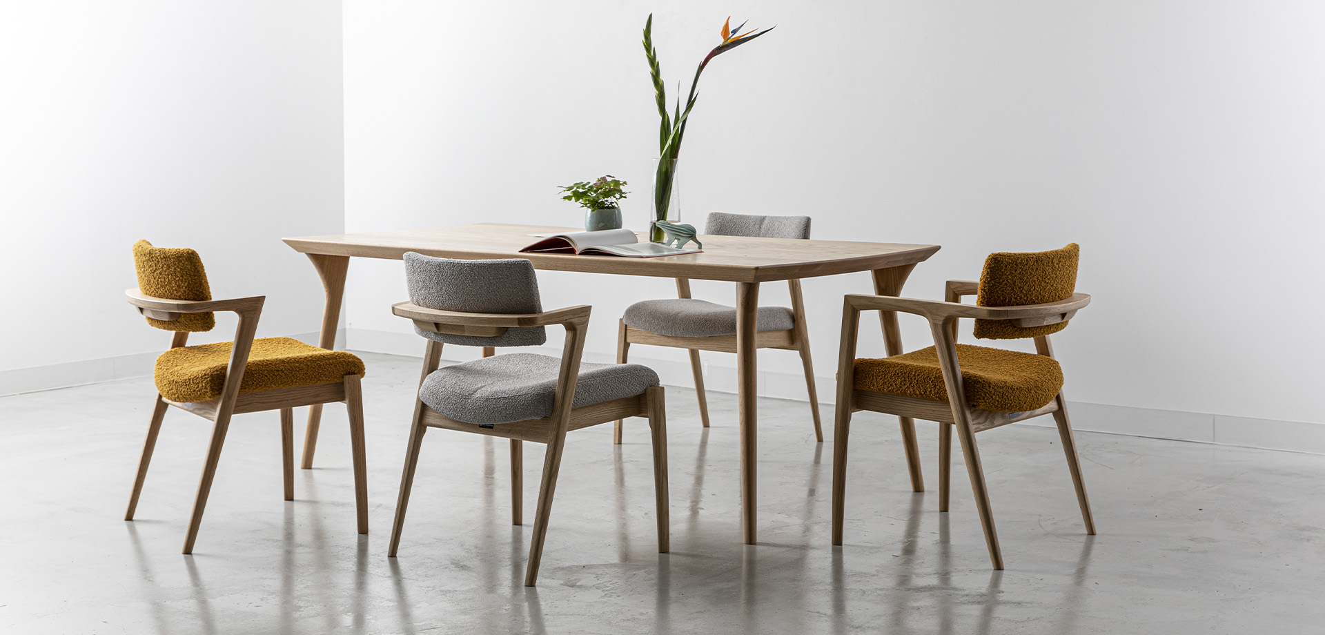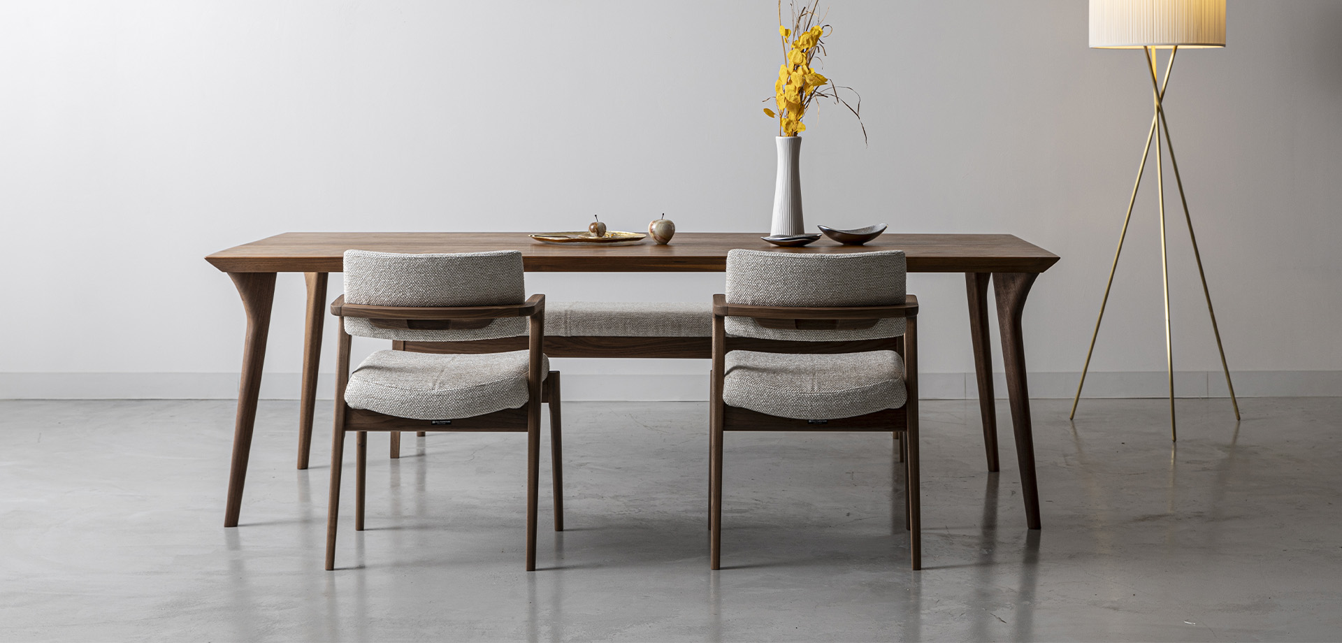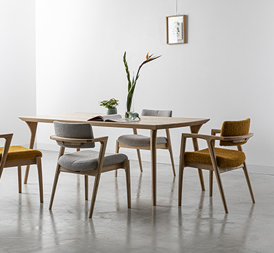 大人気シリーズ「Koti」のテーブルは、サイズを69 通りと種類豊富にご用意しています。同シリーズ「Koti」チェアはもちろん、まるで芸術作品のようなダイニングチェアにも合わせたい、贅沢なダイニングテーブルです。