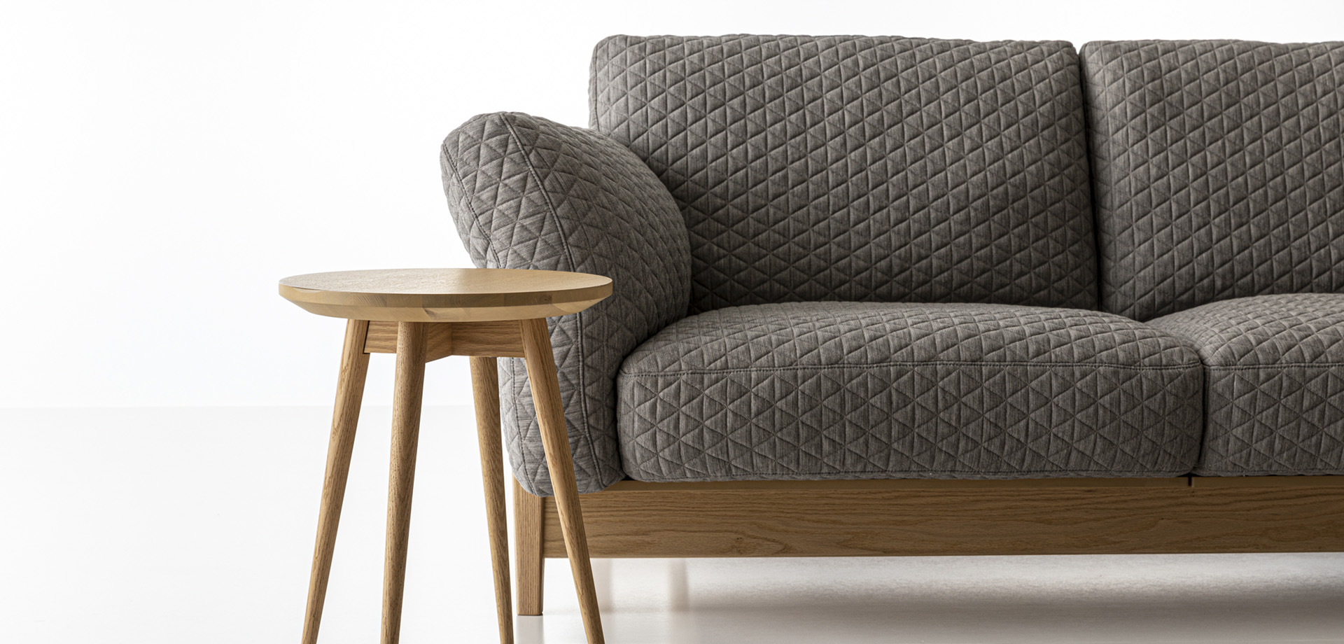風が止み、波も立たず、音もない海。人にも、凪が必要なのではないか。嵐のように慌しい日が過ぎ去った後、気持ちを静められる場所をつくりたい。そんな想いから生まれた居心地のよい形。家具と共に届けたい「平和な時間」。