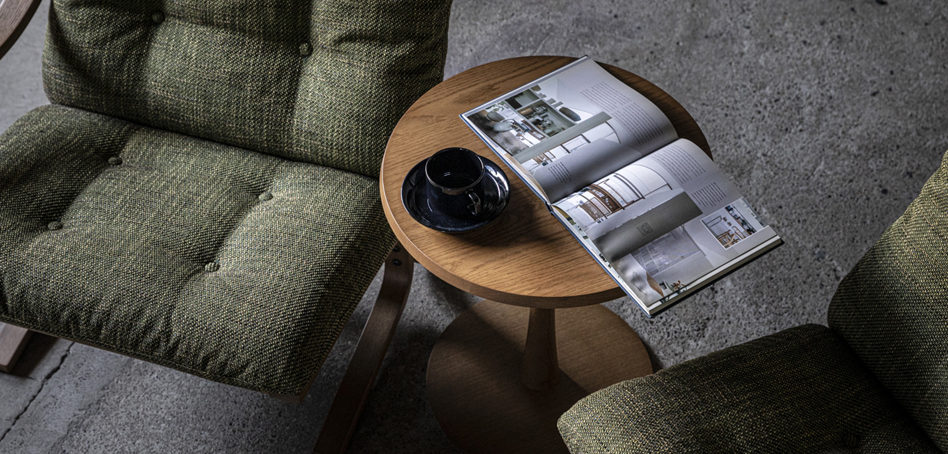 最もシンプルなデザインのサイドテーブル。どのソファに並べても絵になります。