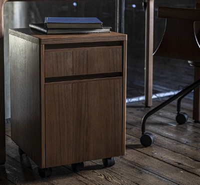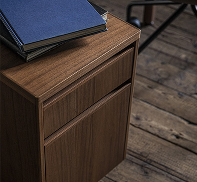抽斗の数は1段と2段の2種類をご用意しています。専用のテーブルにセットすることができ、リビングでもダイニングでも使い勝手の良い空間を作ることができます。