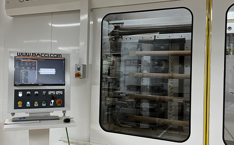 A machining system that performs lathe processing, routing, and sanding in a single integrated operation.