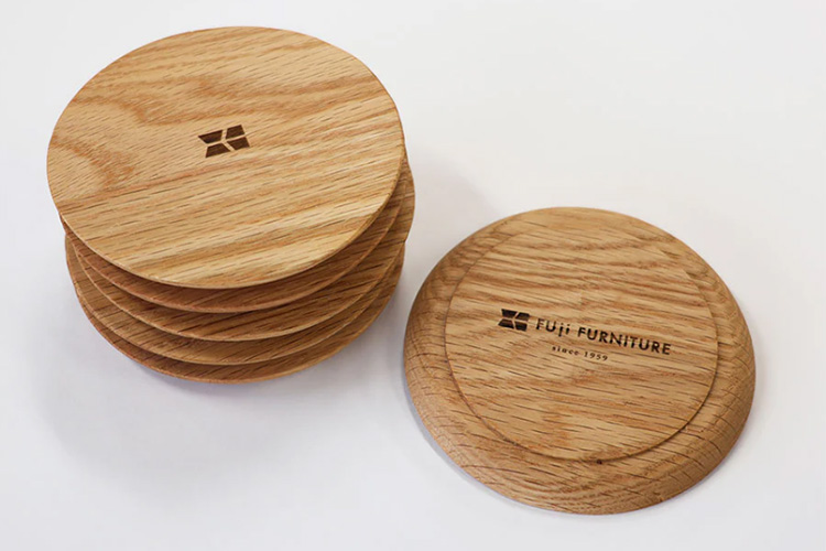 FUJI FURNITUREオリジナル木製コースターを、研磨&コーティングで仕上げるワークショップを開催します。ものづくりの一部を体験することで、製品への愛着が深まっていく。一点ものの木目の表情を楽しみ、木の温もりに心地よさを感じられる期間限定の体験イベントです。仕上げたコースターはお持ち帰りいただけます。