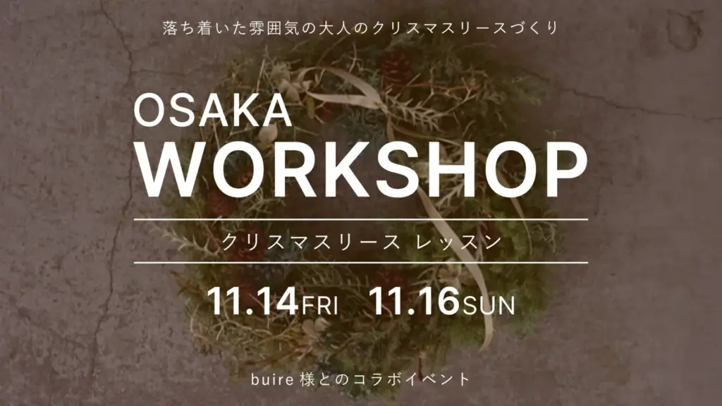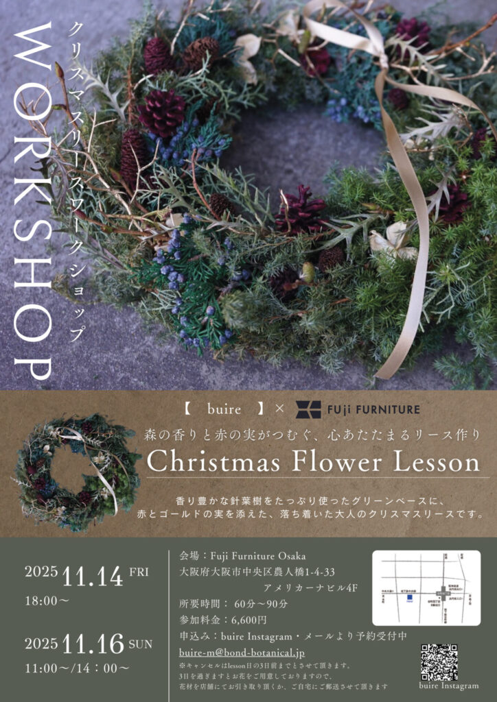 FUJI FURNITURE 大阪 では、「クリスマスリースレッスン」を開催いたします。