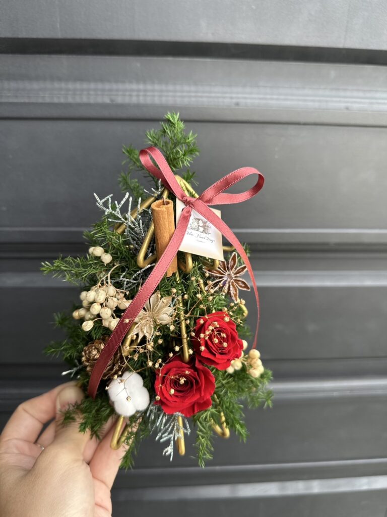 約5年ほど楽しめるプリザーブドフラワーを使って、卓上サイズのクリスマスツリーを作るプログラム。