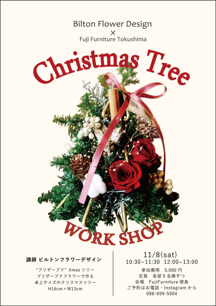 徳島店では11/8日(土)にクリスマスツリーを作るワークショップを開催します。