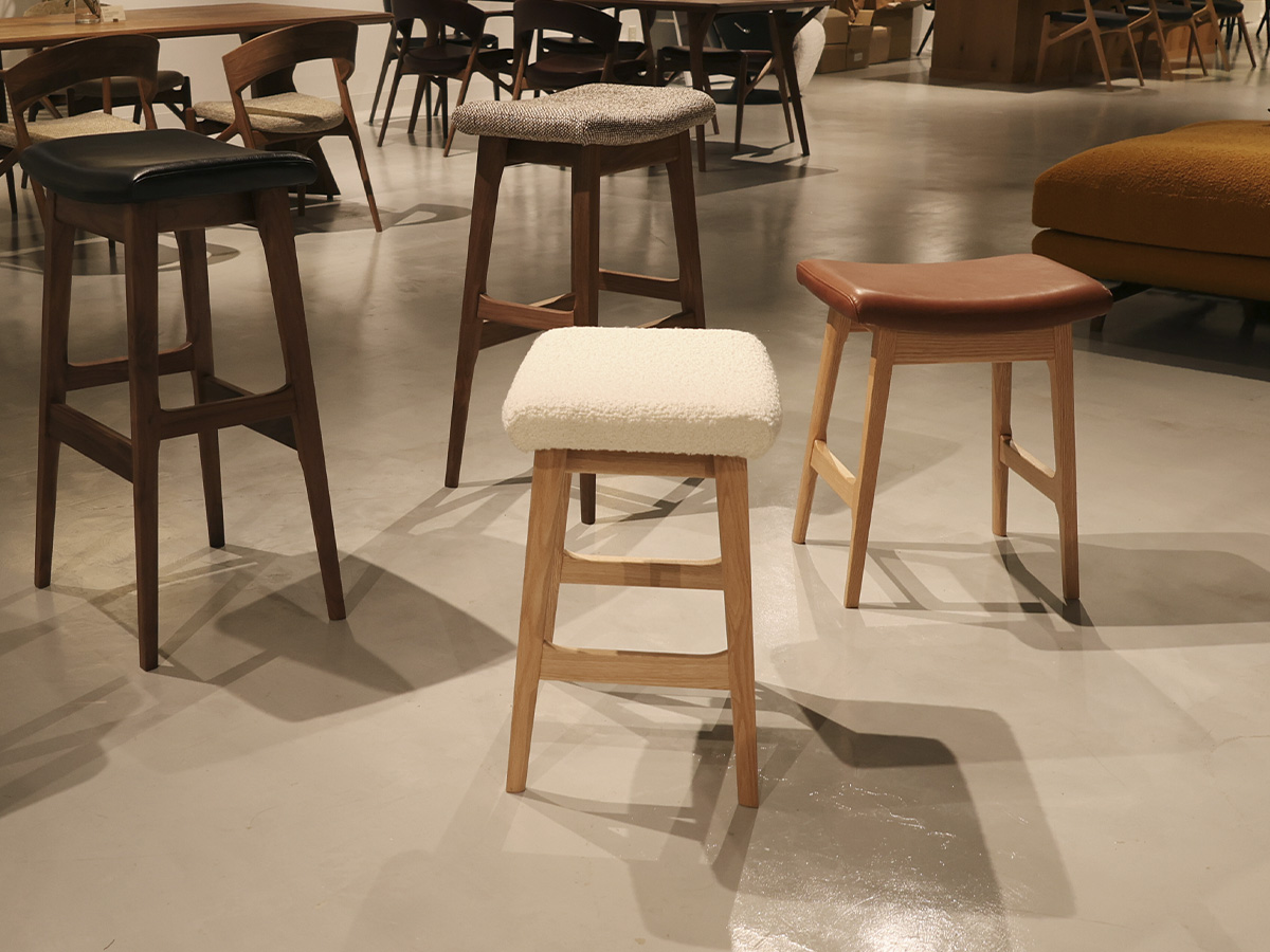 ハイタイプは、バーカウンターなど高さのある空間に。構造の美しさが際立ち、スタイリッシュな印象を与えます。ロータイプはキッチンに寄り添う穏やかなプロポーションで、軽やかさと親しみを感じさせます。
