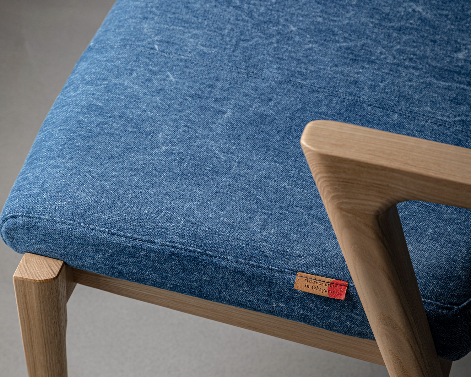 旧式のシャトル織機で織り上げられた、岡山県のセルビッジデニム。丁寧な洗い加工が生む表情は、使うほどに味わいを深め、木の経年変化と静かに響き合います。確かな物性と、柔らかな風合い。暮らしの風景に、心地よい深みと穏やかなぬくもりをひろげます。
