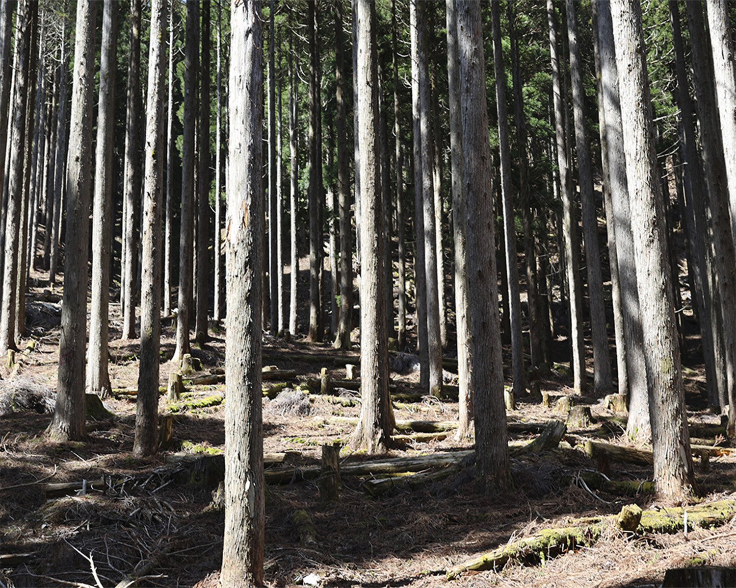 四国のうち約7割が森林に覆われていて、さらにその6割がスギとヒノキを主体とする 人工林です。中でも愛媛県は500年続く日本最古の人口林を有するため、最も良質な木が得られます。